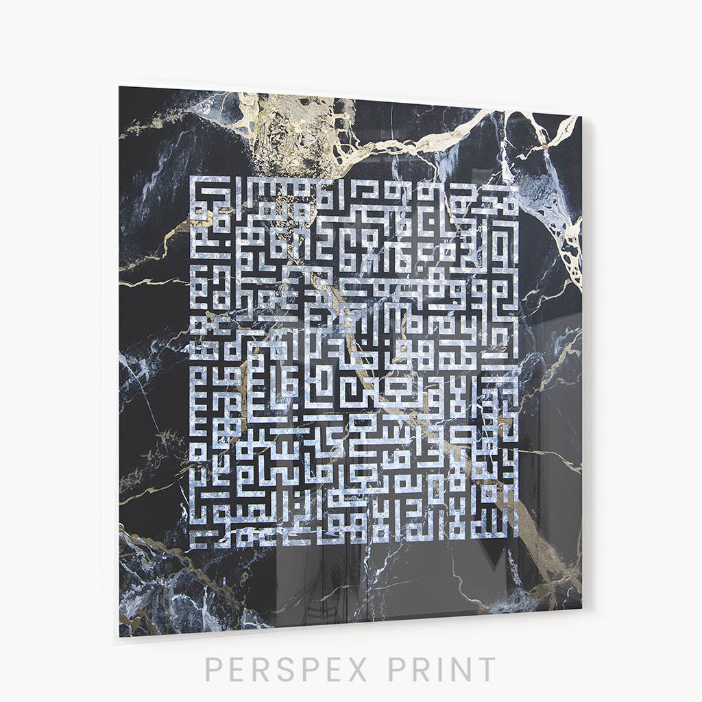 AYAT-AL-KURSI - BLACK MARBLE & CRUSHED VELVET | Perspex