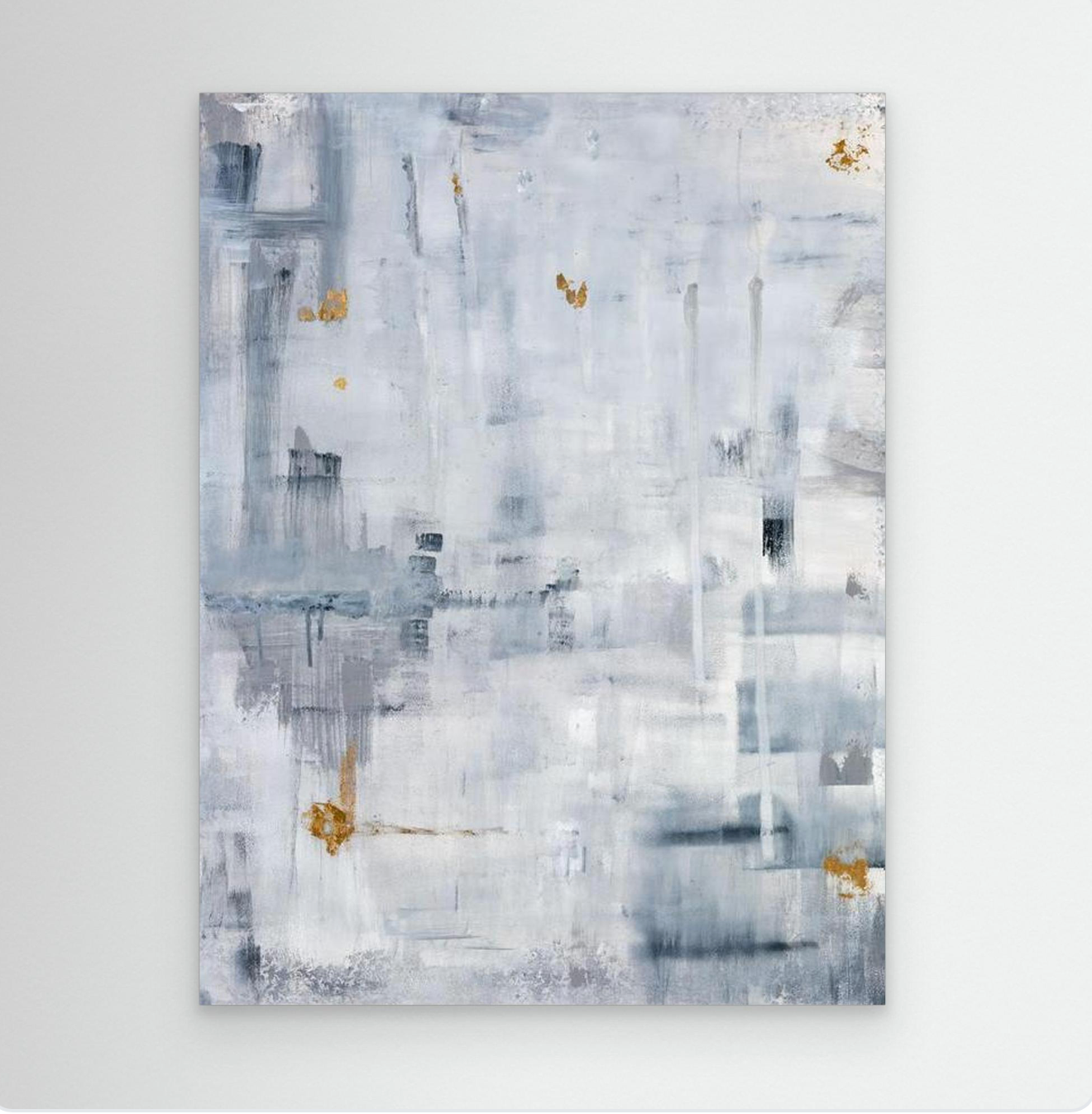 Pleasing, peaceful and timelessly tranquil, this painting features abstract art with a calming combination of white, greys and gold to offer something soothing to the eye. Suited to clean, modern and contemporary spaces to add a little moment for you to stop and reflect.
